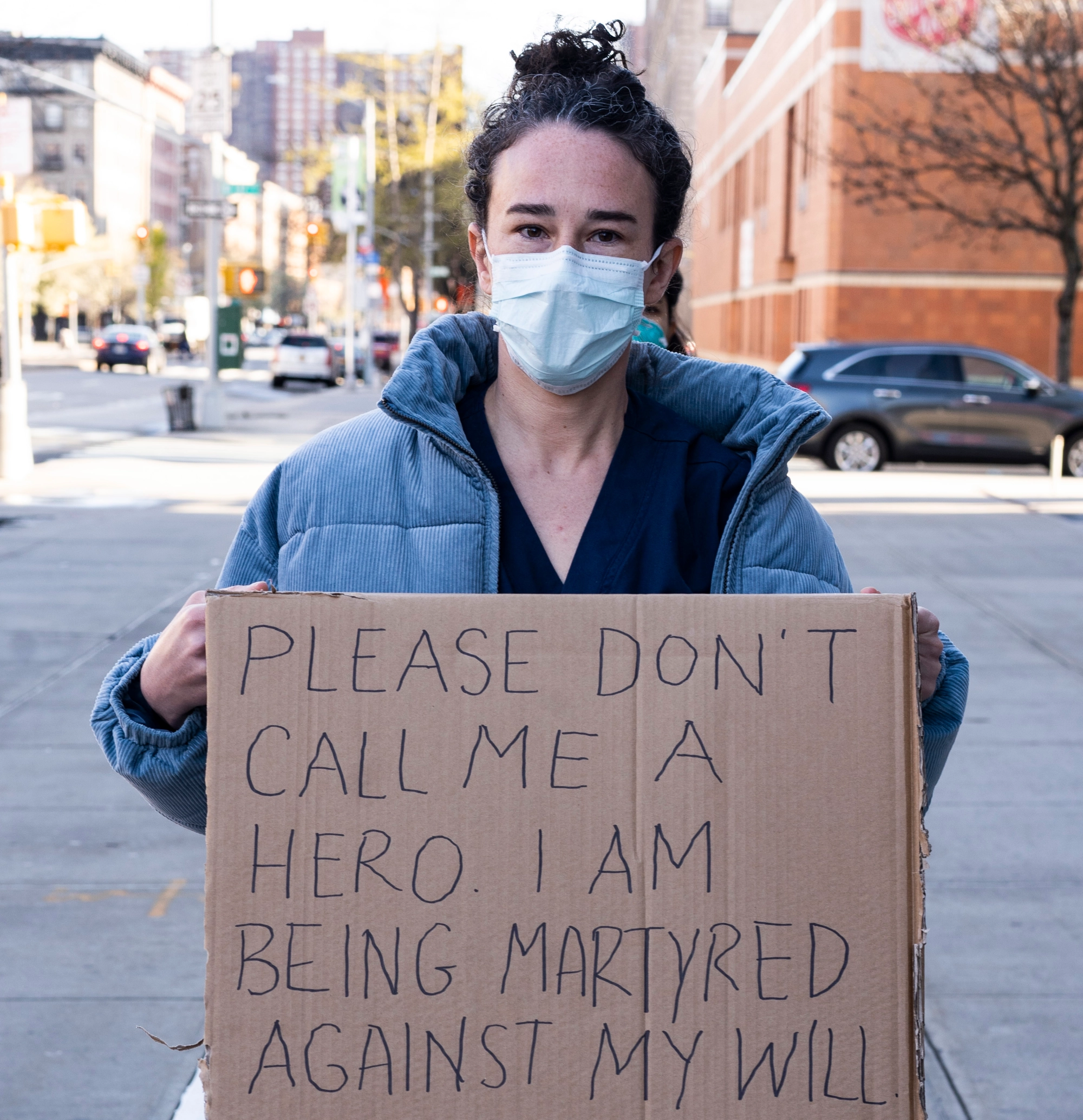On April 6, 2020, I photographed three healthcare workers that joined and organized a protest at Harlem Hospital, NYC. It was one the first main protests in NYC because of COVID-19. They demanded PPE, better working conditions, transformation in the hospitals, coordination with the related industries and protested against how the private hospitals and the state were handling the pandemic.